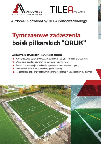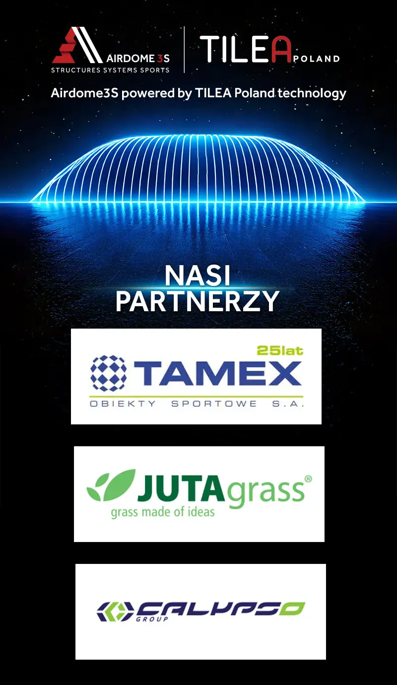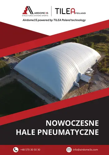 AIRDOME 3S powered by TILEA Poland technology to innowacyjna firma specjalizująca się w realizacji hal pneumatycznych i hal łukowych na potrzeby obiektów sportowych, militarnych, logistycznych i przemysłowych.
